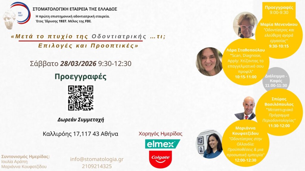 «Μετά το πτυχίο της Οδοντιατρικής... τι; Επιλογές και Προοπτικές» - Σάββατο 28/03/2026 - 9:30 - 12:30